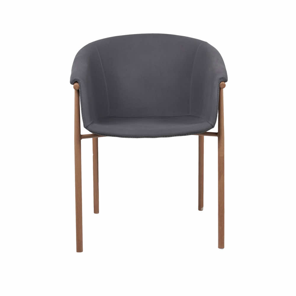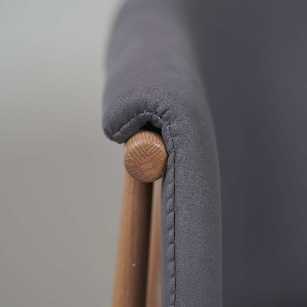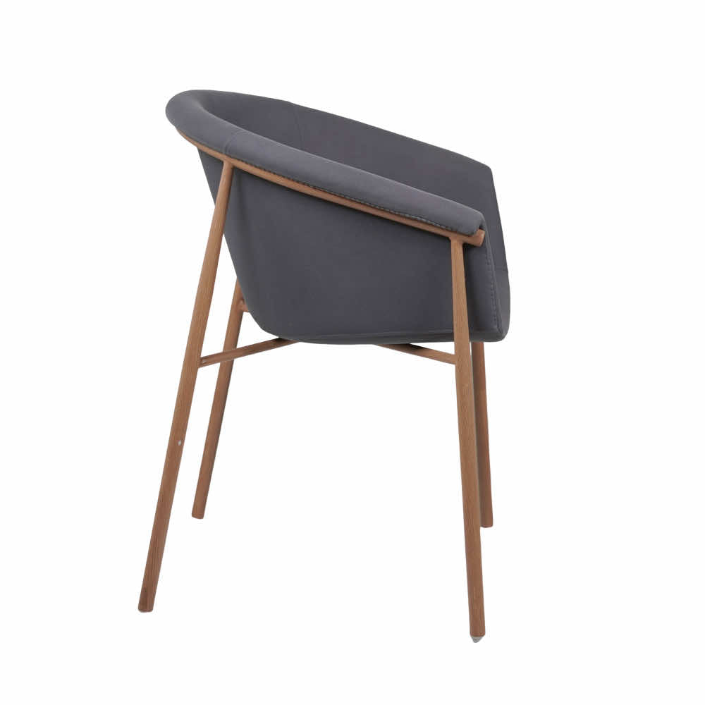 All-Day Comfort: Plush, grey-upholstered seat and supportive curved back are ideal for long, casual meals or quick coffee breaks.
