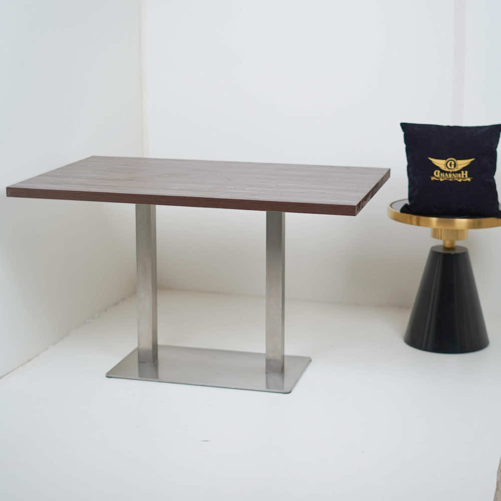 Bring a modern edge to your dining area with this unique Icon SS Table Base. The stylish double pillar structure gives the walnut top a sophisticated look, while also providing sturdy support. With its sleek design and statement piece aesthetic, this table is perfect for adding a bold touch to any room!