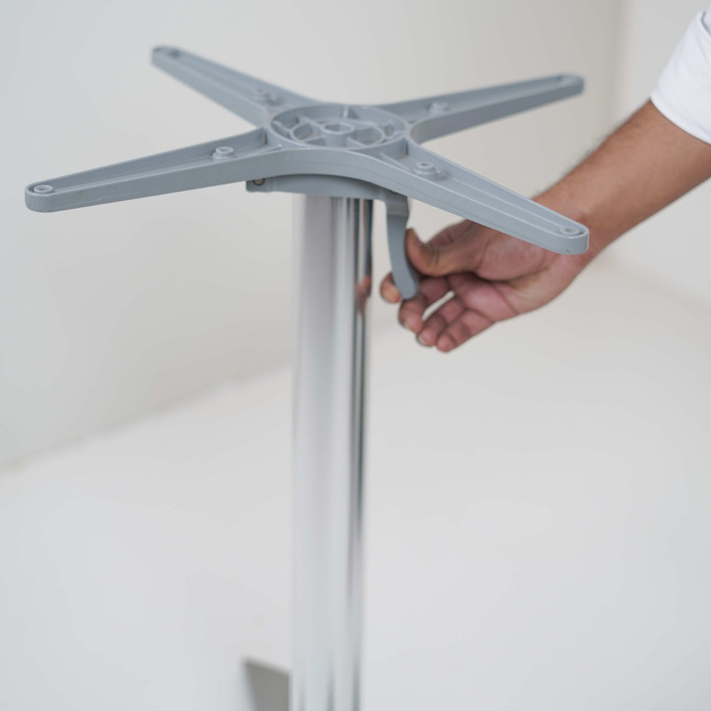 This SS Foldable Plus Single Pillar Table Base helps make a statement! Durable and dependable, its strong and sturdy stainless steel construction is sure to keep the party going. Whether you're hosting a dinner party or a game night, this base is ready to provide a sturdy foundation for your next gathering. Time to show off your table setting skills!