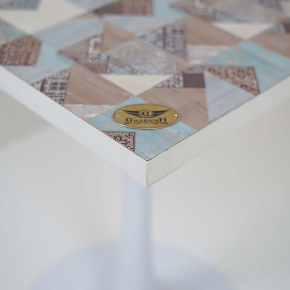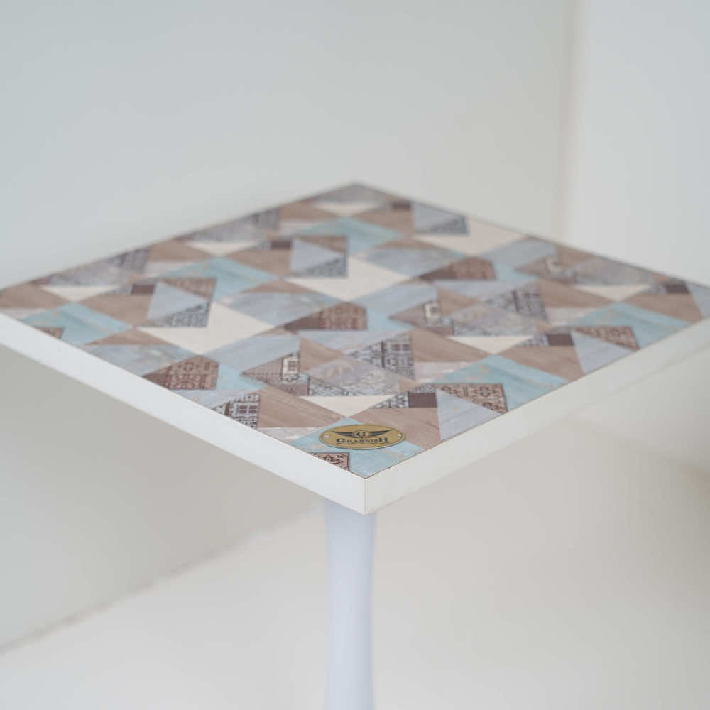 2 Seater White Pole Table With Designer Top