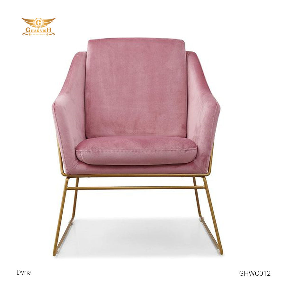 Our Dyna arm chair is a perfect choice for your lounge area with velvet effect fabric and contemporary PVD golden colour coated stainless steel frame. Its smooth touch upholstery and high density foam cushion provides comfortable sit while looking stunning in your lounge or bedroom.