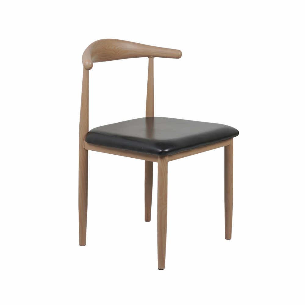 Hans wooden finish metal cafe chair in natural oak finish is complete with a black padded seat. This is a comfortable cafe chair even without a seat pad. This simple and elegant metal dining chair is renowned for its simplicity in design.