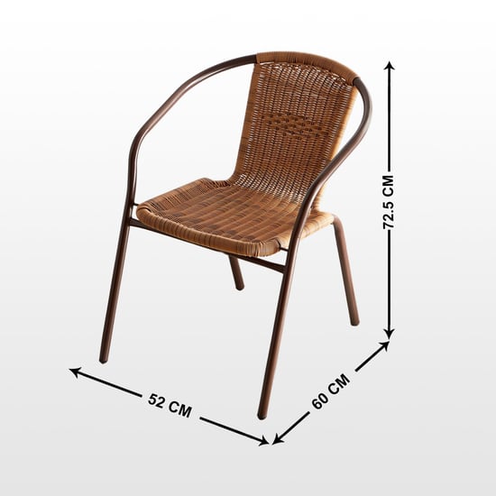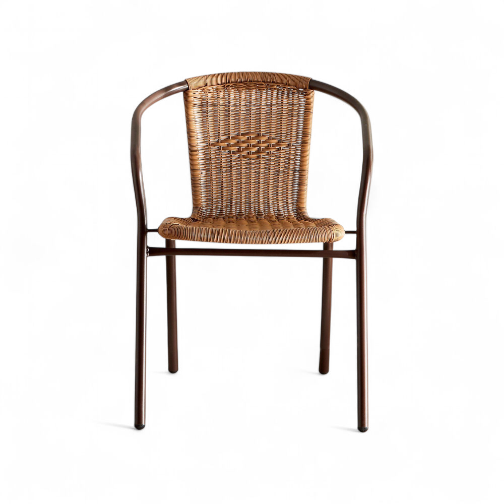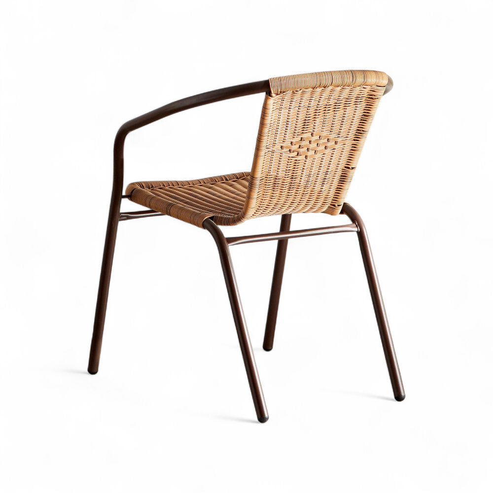 The chair features a hand-woven premium rope backrest and seat, skillfully wrapped over a powder-coated metal frame to ensure excellent stability and structural integrity. The ergonomic shape supports relaxed posture, making it ideal for long conversations, dining, or leisure seating.