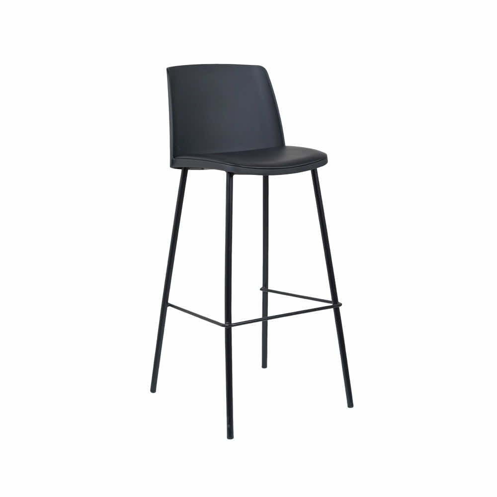 Lander Black Bar Stool with Cushion and Solid Pipe