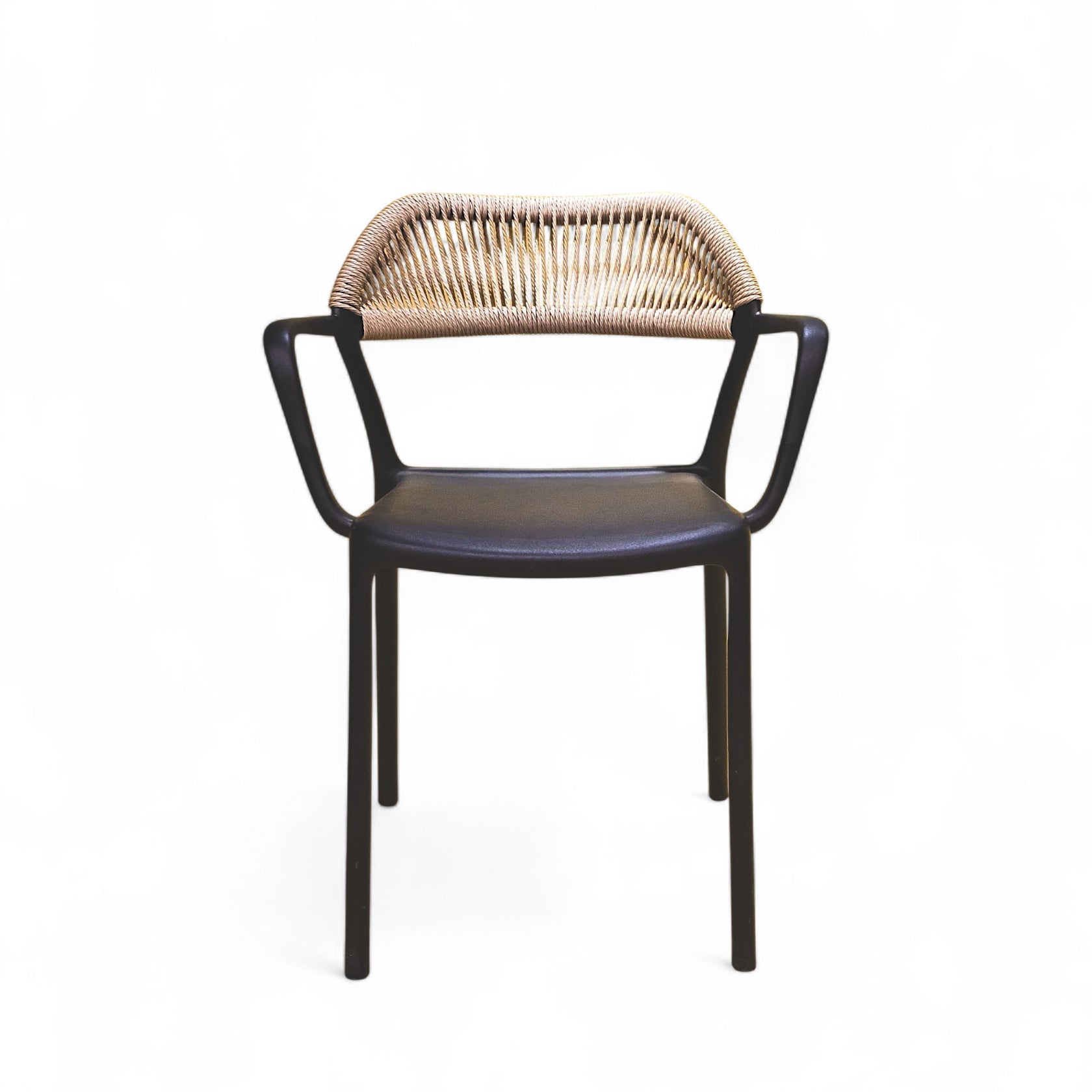 The black PVC rope finish offers a versatile and minimalist aesthetic while being moisture-resistant, easy to clean, and perfect for busy cafés, restaurants, and lounge areas. Lightweight yet strong, this chair is simple to move, arrange, and maintain.