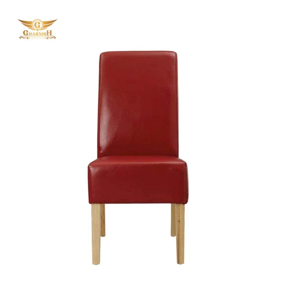 A traditional design combining red faux leather with Teak colour legs. Combine with an vintage restaurant style dining table to create a classic finish.