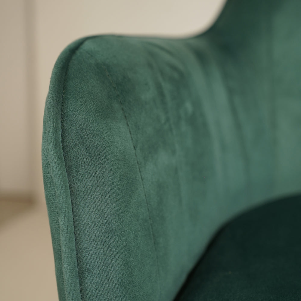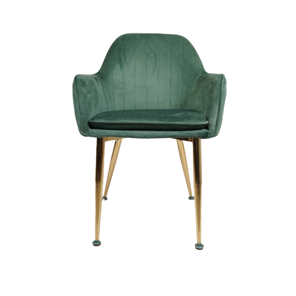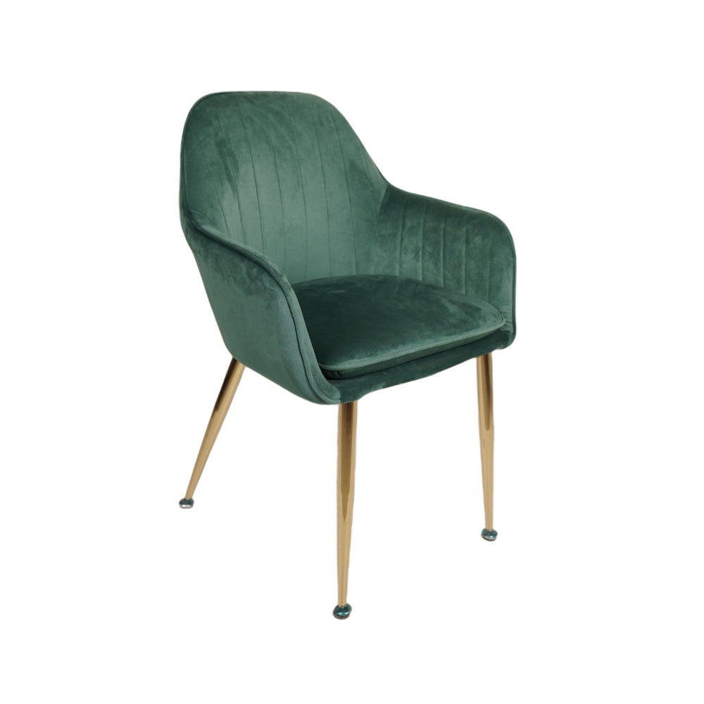 The Stripe Green Restaurant Chair instantly upgrades any dining space with its bold color, vertical channel stitching, and eye-catching gold legs. Designed for restaurants, premium cafés, and stylish dining venues, it features a supportive contoured back, padded seat, and generously sized armrests so guests enjoy both luxury and ergonomic comfort. High-density foam and velvet-style fabric create a soft, inviting experience, while the sturdy steel frame and non-slip legs deliver reliable performance for high-traffic hospitality settings.