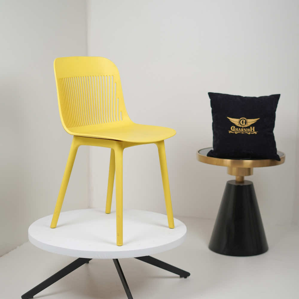 Add a pop of sunshine to your restaurant or café with the Zara Yellow Café Chair by Gharnish — a perfect blend of comfort, durability, and design. Made from premium imported PVC material, this chair brings both style and strength to your dining spaces. Designed for modern interiors, outdoor patios, and casual dining settings, the Zara Chair is one of the most versatile pieces in the Gharnish restaurant furniture collection.