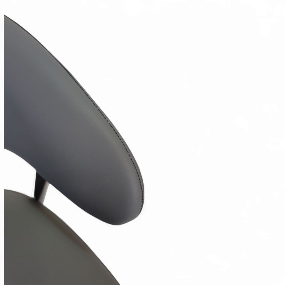 Minimalist Luxury: Soft, grey leatherette and smooth curves bring sophistication and comfort to any space.